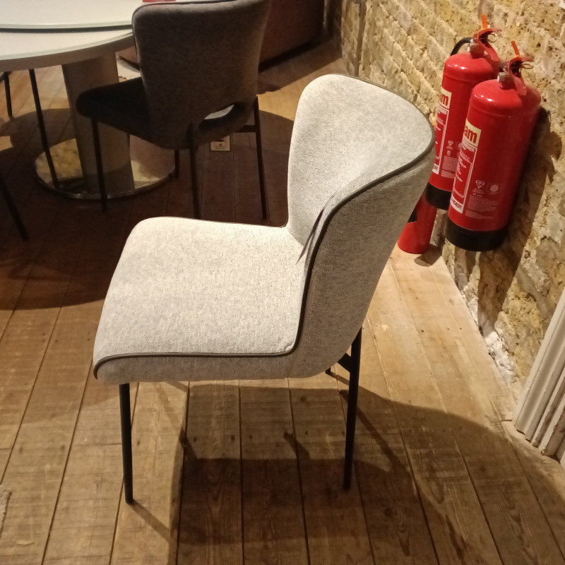 The galini dining chair in light grey with a dark grey piping