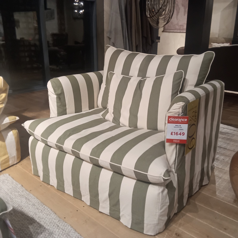The Maja Loose Cover Fabric Snuggler Striped Sofa combines timeless elegance with exceptional comfort. Built with a durable hardwood and engineered plywood frame, it ensures long-lasting support. The serpentine sprung base and Comfortwrap feather seat cushions provide a plush, supportive feel, while the webbed back and feather cushions enhance relaxation. Removable hardwood legs allow easy maneuverability, and the reversible seat and back cushions extend longevity. With a versatile loose cover design, you can choose from a range of fabric options to suit your style, making this sofa a perfect blend of practicality and sophistication. If you love Maja like we do, call our experts now on 01483 908320
