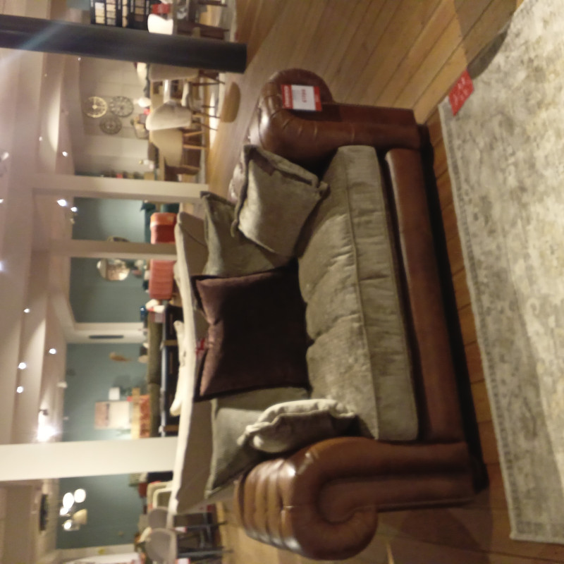 Fabric x leather brown snuggle chair with scatter back