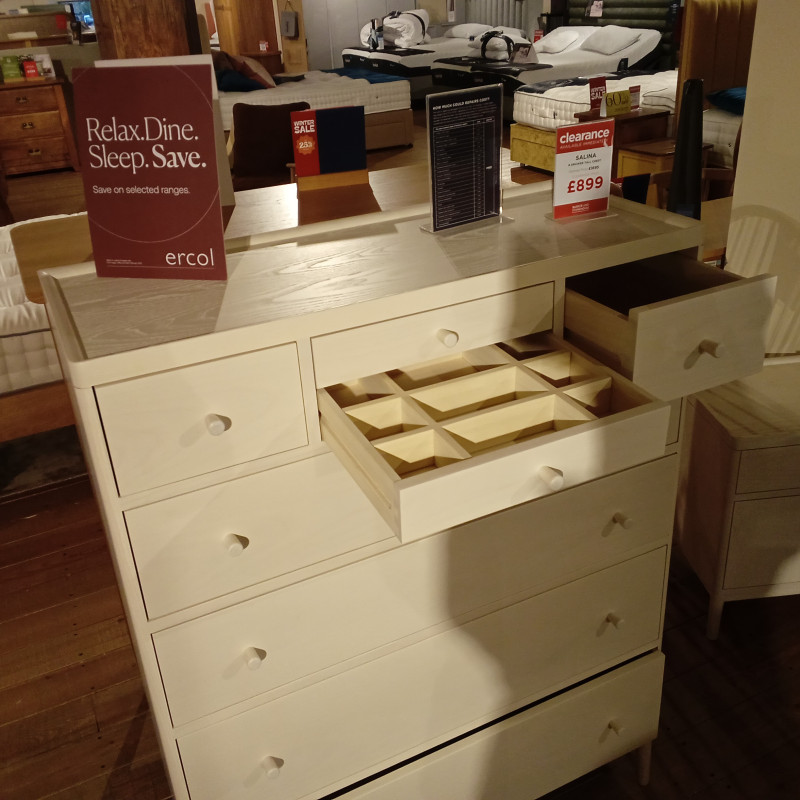 Painted light wood x8 drawer chest of draws