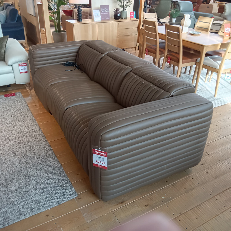 Stylish leather sofa ready to go in Gulidford upstairs showroom.