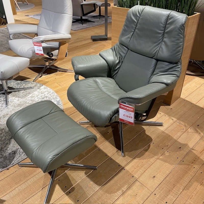 Experience exceptional comfort with the Stressless Reno Medium Cross base Leather Recliner Armchair and Footstool. Designed with soft foam over padding and an adjustable neck rest up to 10 cm, it provides perfect support for your body. Featuring BalanceAdapt for gentle rocking, Plus for neck and lumbar support, and the Glide system for smooth reclining, this medium recliner adapts to every movement