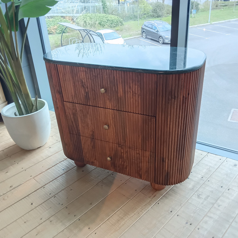 Tasso chest of 3 drawers mango wood with green marble top