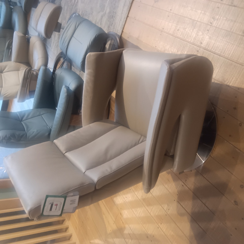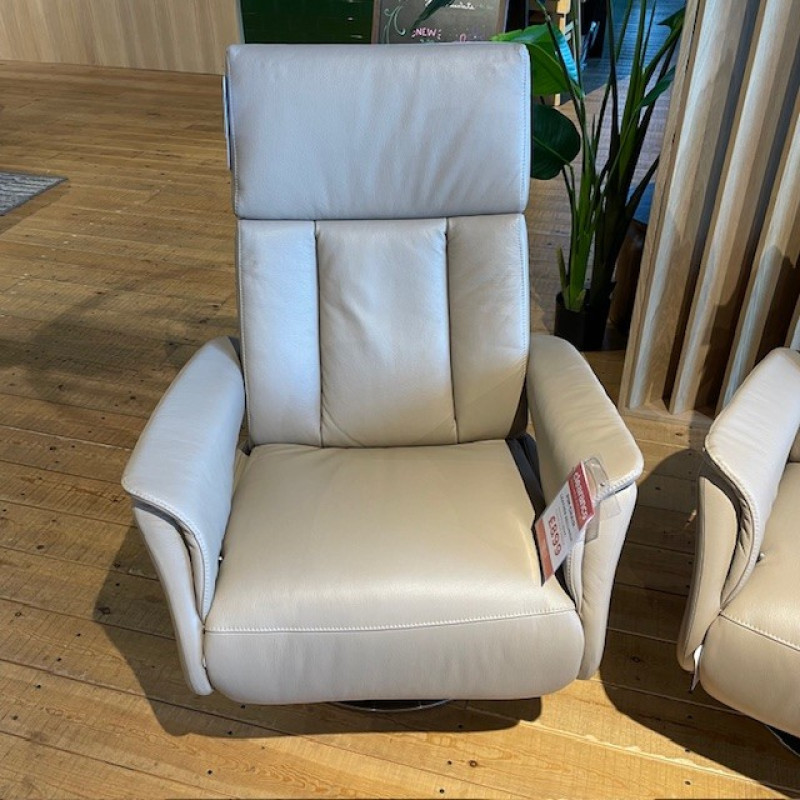 Good condition leather manual recliner in Beige leather shown in Gulidford upstair showroom.2 available