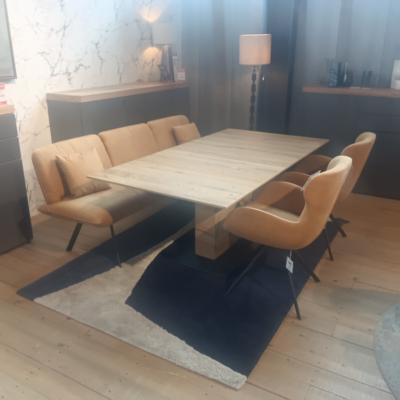 Rubin dining bench by Venjakob in Kapstadt Cognac with Anthracite legs.